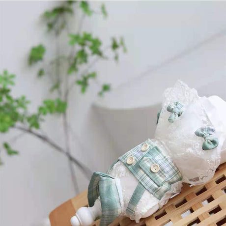 Dog Clothes Mint Green Small Plaid Fake Two-piece Dress