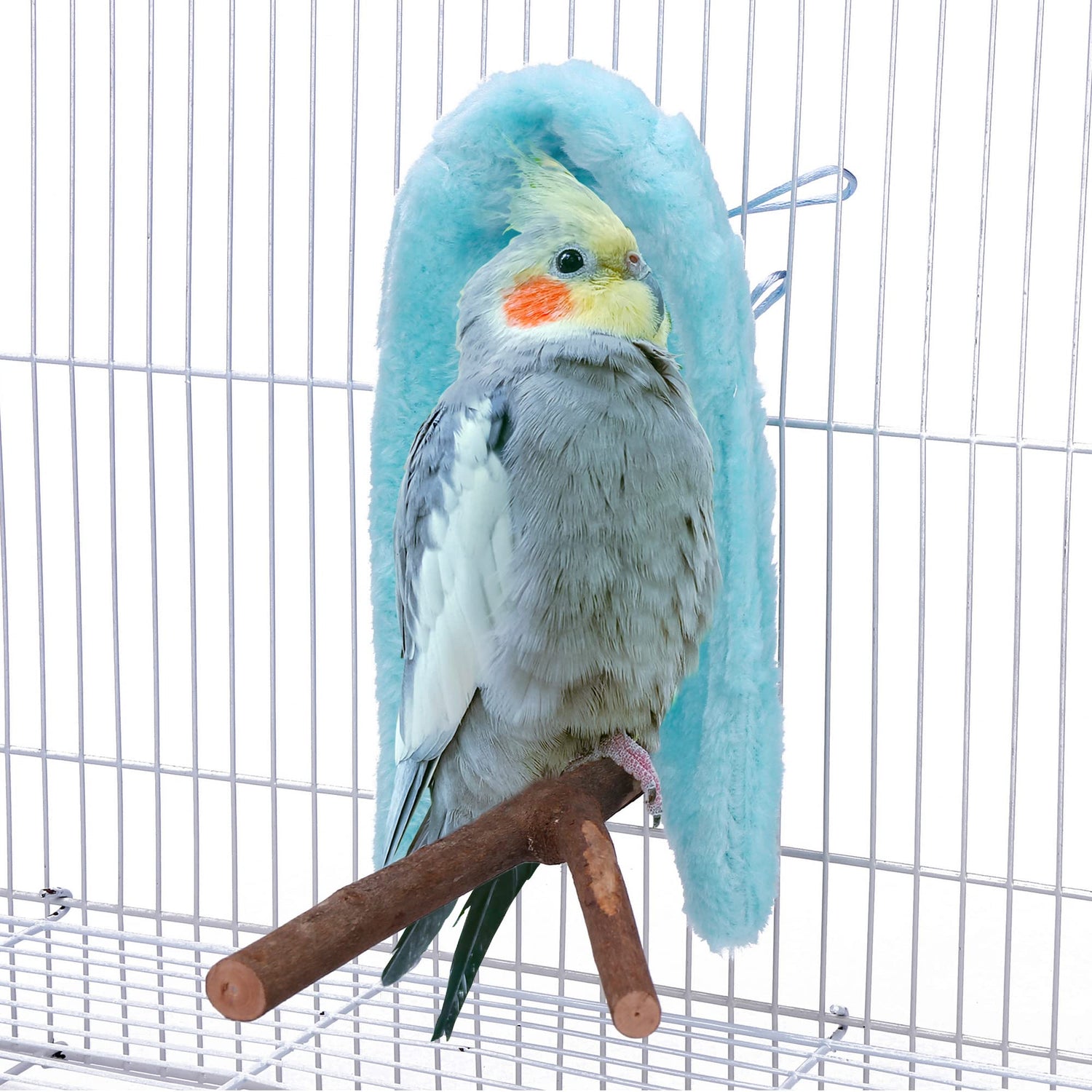 Filhome Comfort Corner Fleece Bird Blanket Parrot Cage Snuggle Hut Warm Bird Nest House Bed Hanging Hammock Toy for Parakeet Cockatiel Pigeon Small Animals Shelter Plush Bedding(Blue/M)