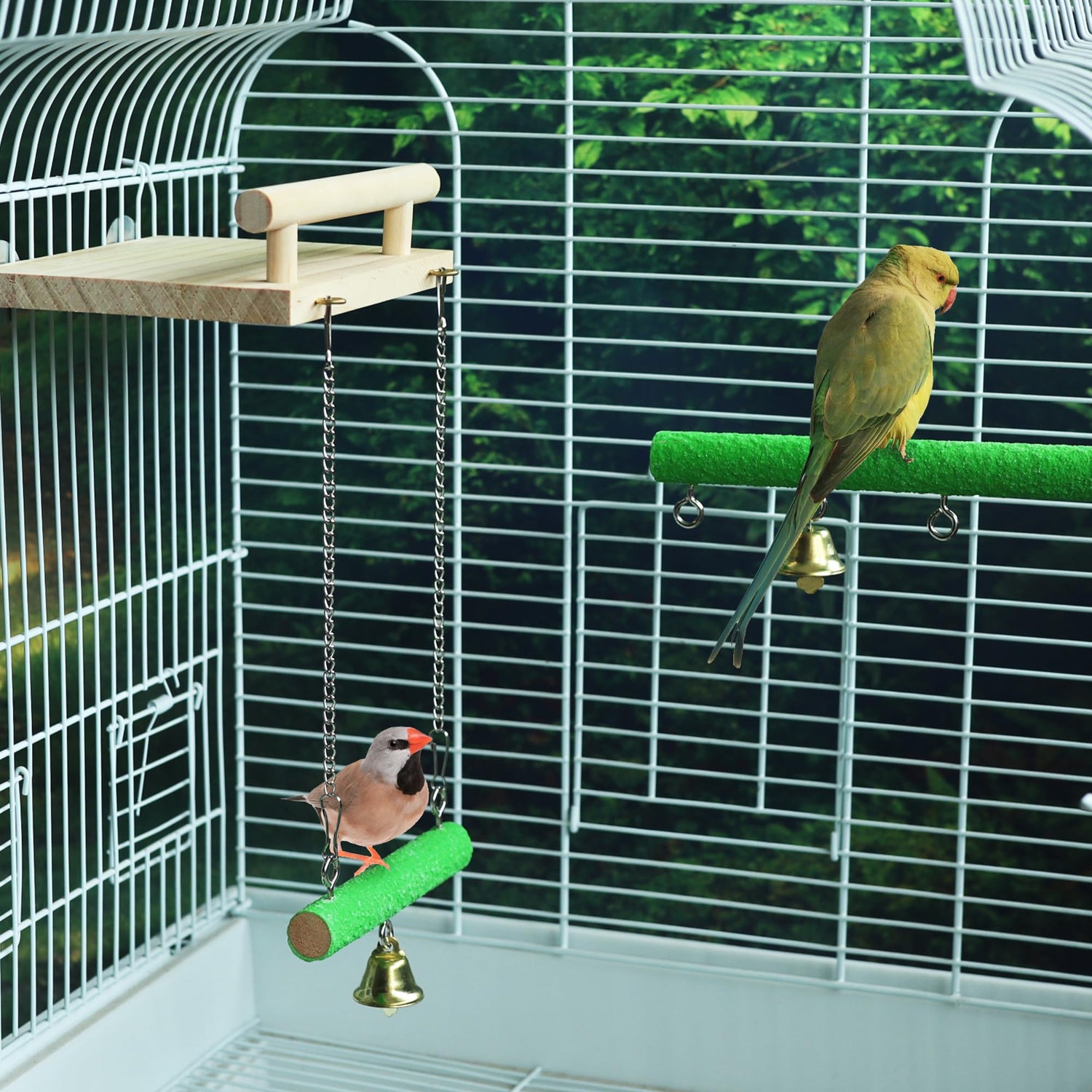 • Sandy Perch & Swing: The sandy surface allows birds to sharpen their beak and trim their nails, which benefits their foot exercises and increases the grip of their claws. This swing comes with a bell that makes a clear ringing sound to attract birds to play and keep them happy.