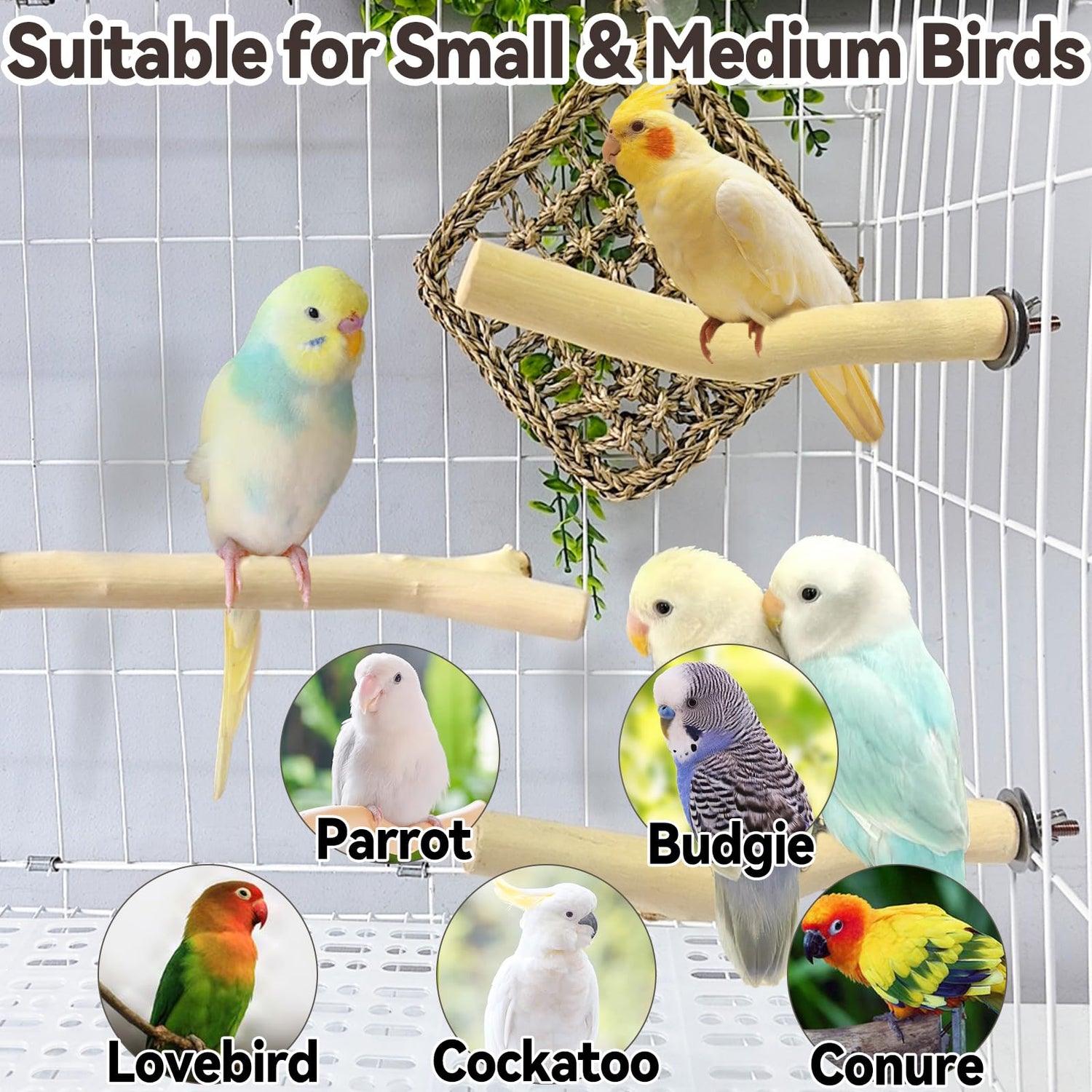 Hamiledyi Wood Bird Perch Stand Parrot Stand Branch Natural Wood Stick Paw Grinding Cage Accessories for Small Birds Parrots Parakeets Cockatiels Conures Lovebirds(2 Pcs)
