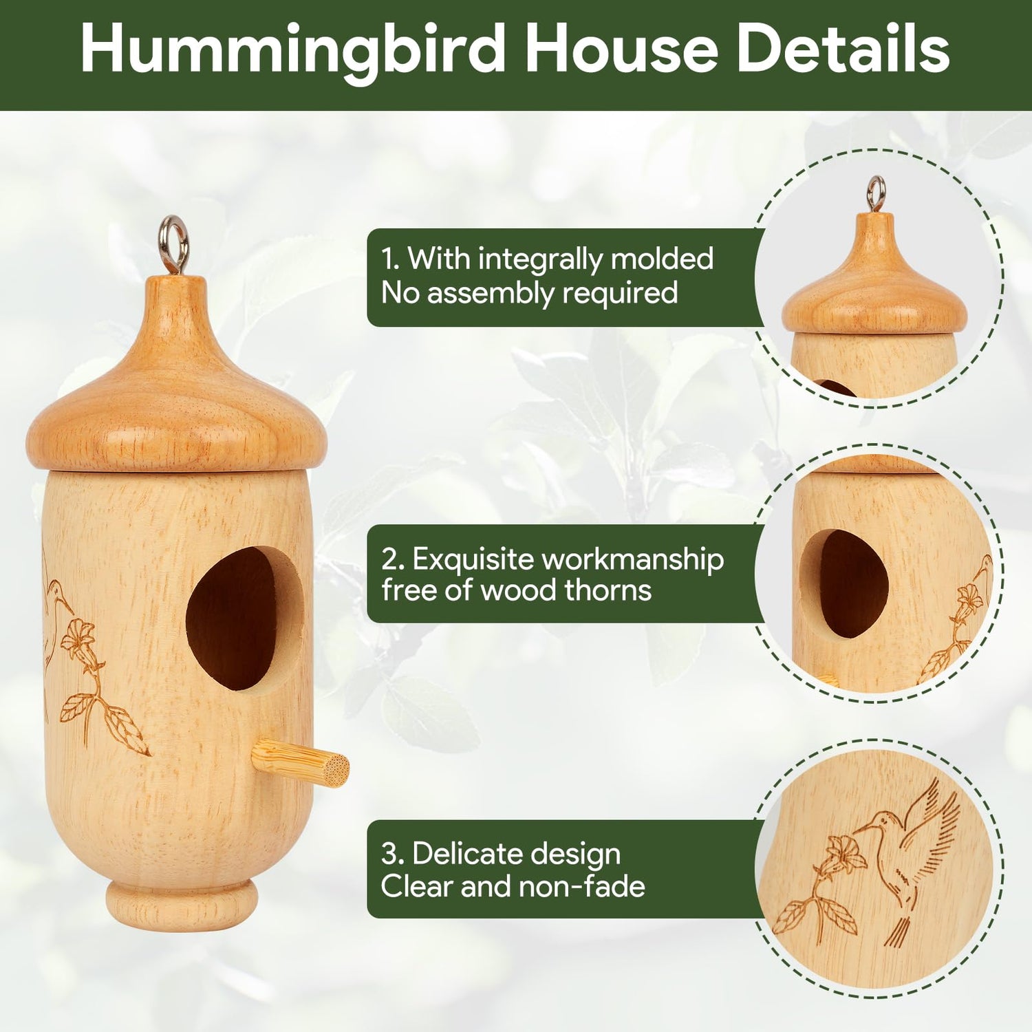• 【Natural Wooden Hummingbird House】Hummingbird houses for outside are made of natural boxwood, which have a more natural taste and are easier to attract hummingbirds to build their nests. They are environmentally friendly and durable, strong and breathable, and can be used for a long time. Even in season without hummingbirds, hanging hummingbird nest house is perfect addition to the patio, garden, or backyard