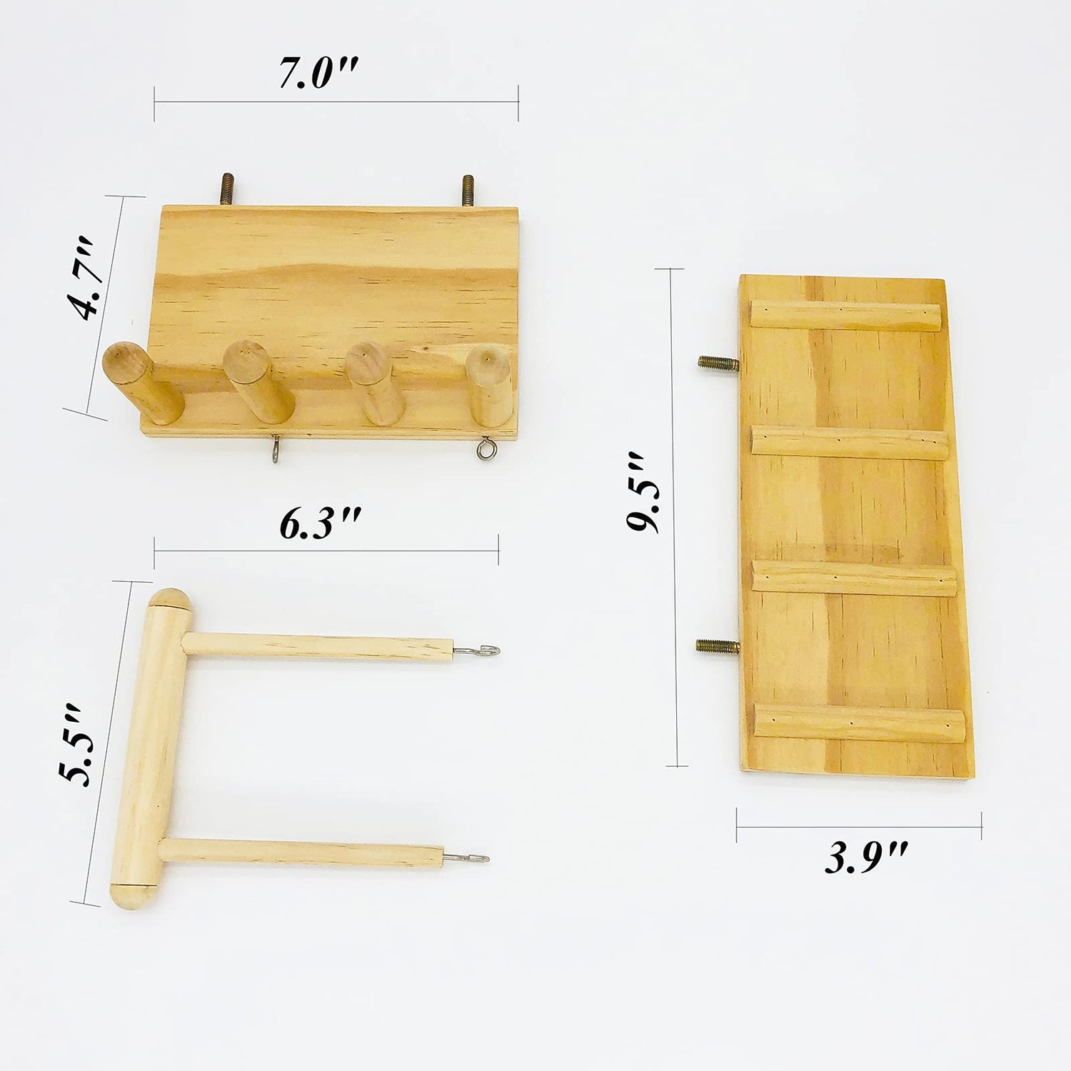 - DIMENSIONS: Station - 12 * 18 * 6cm/4.7(W)" * 7.1"(L) * 2.4"(H), Swing - 14*15cm/5.5"(L) * 5.9"(W), Climbing ladder - 10*24cm/3.9(W)" * 9.4"(L). Suitable for most cages.
