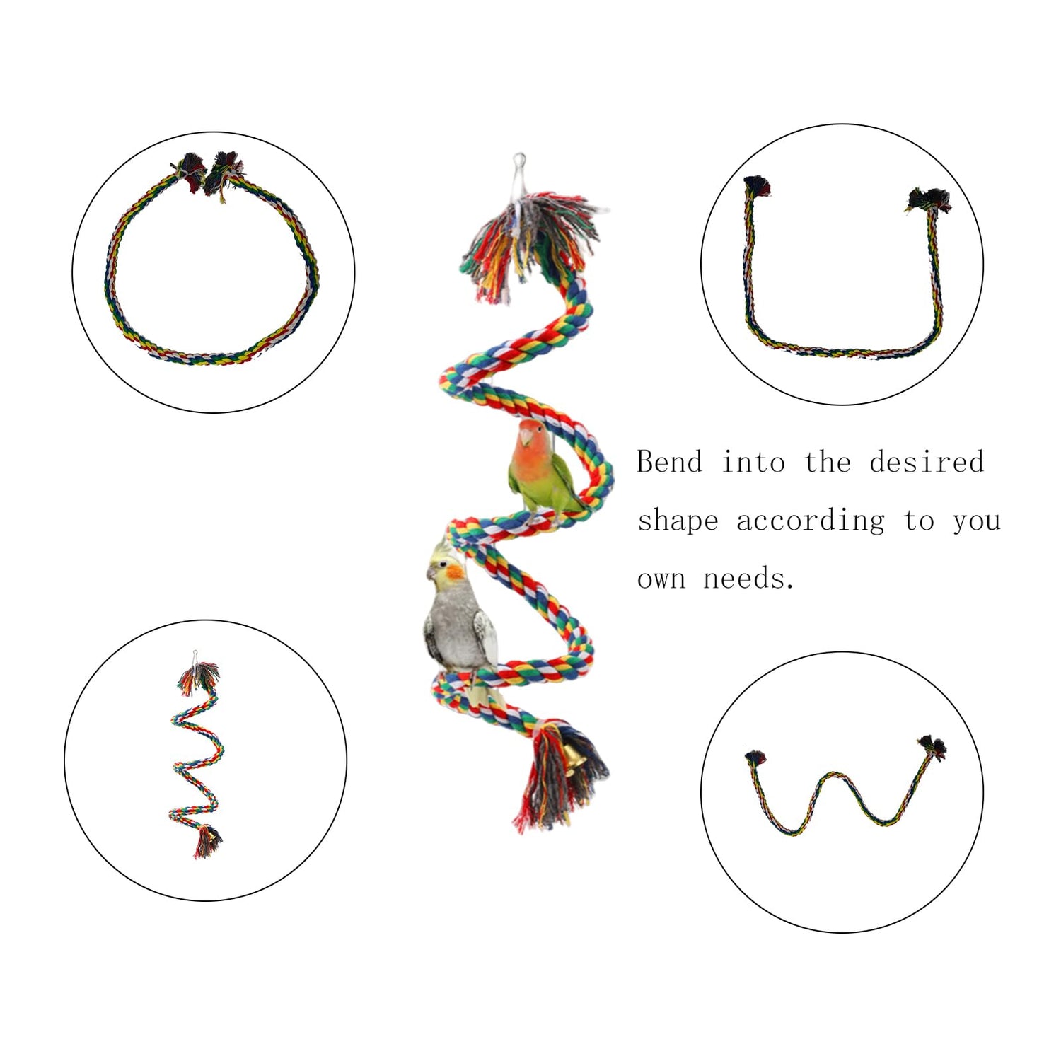 - 【Multifunctional Bird Perches for Cage】Our Bird Rope Perch for Cage is designed to be incredibly flexible, allowing you to bend and shape it into any desired configuration. Whether you want a straight perch, a curved one, or even a coiled design, our Bird Rope Perch can be molded to fit your bird's preferences and the layout of their cage. This versatility makes it a standout among bird perches, offering endless possibilities for customization and comfort.