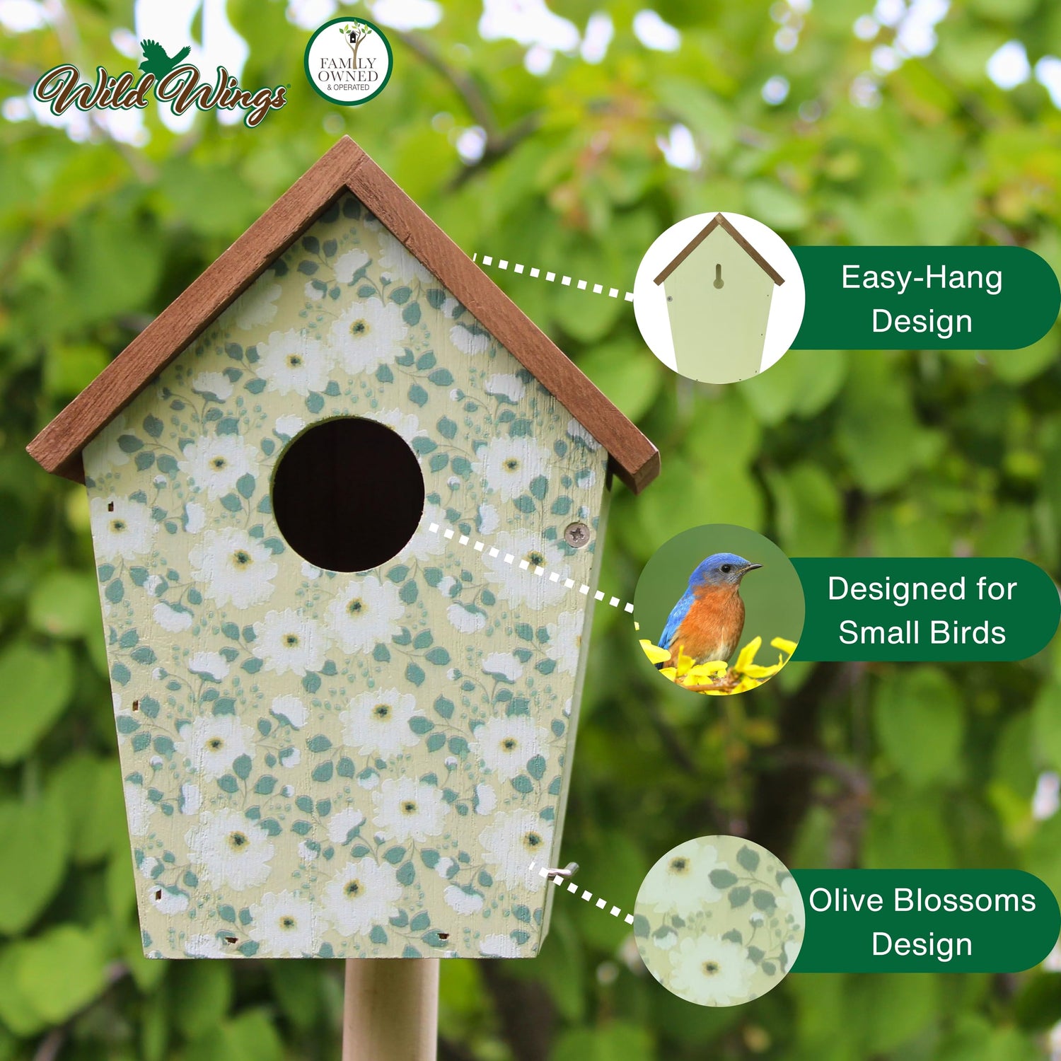 Wild Wings Decorative Bluebird House Olive Blossoms, Green