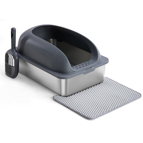 Stainless Steel Cat Litter Box With Lid, Large Cat Litter Box For Big Cats, Scoop And Mat Included