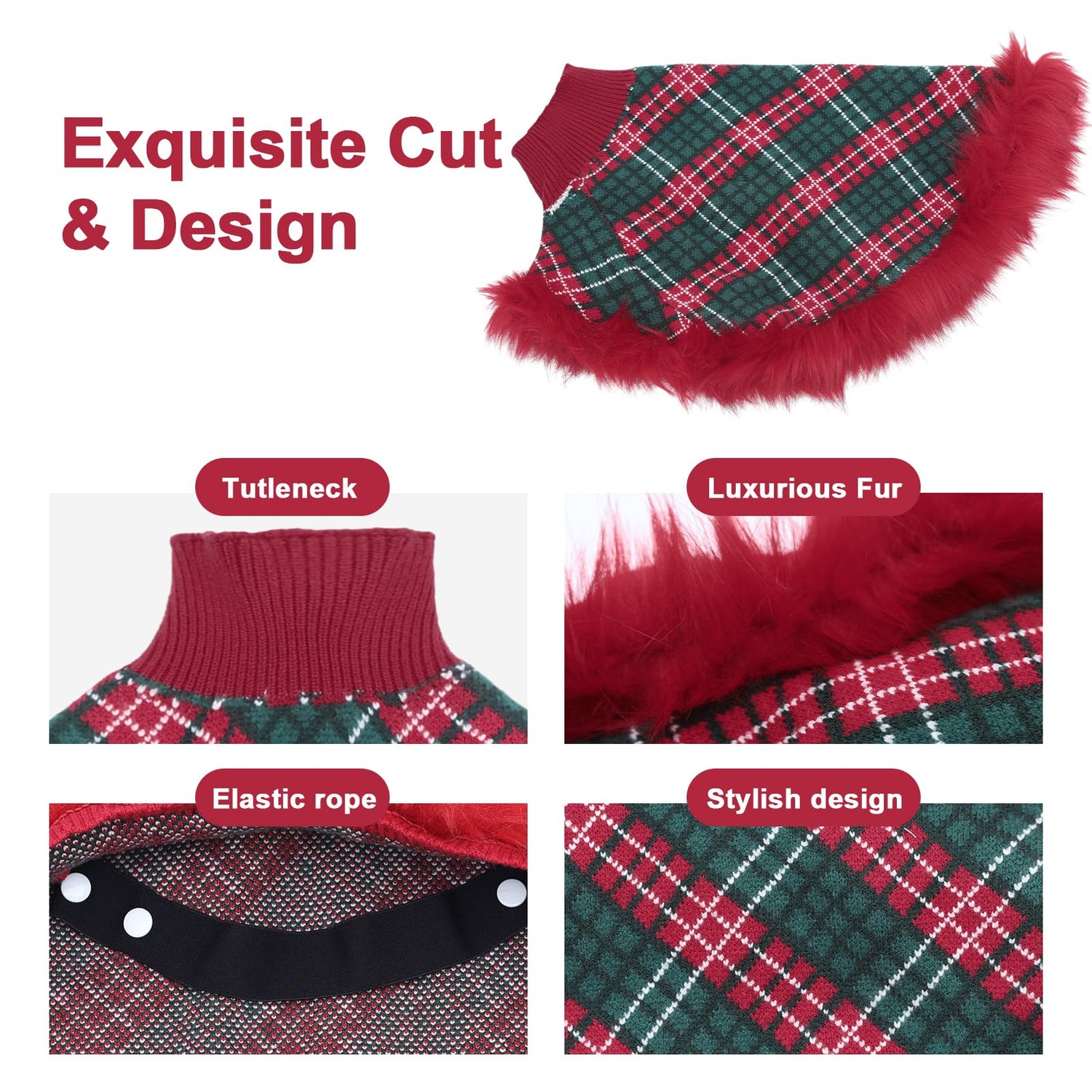 UNIPUP Dog Sweater Cloak, Pearl Cotton Bouclé Yarn Puppy Sweater, Cold Weather Coat Knitwear for Small Dogs, Classic Turtleneck Thick Dog Clothes with Thick Fluff DS-DP01L
