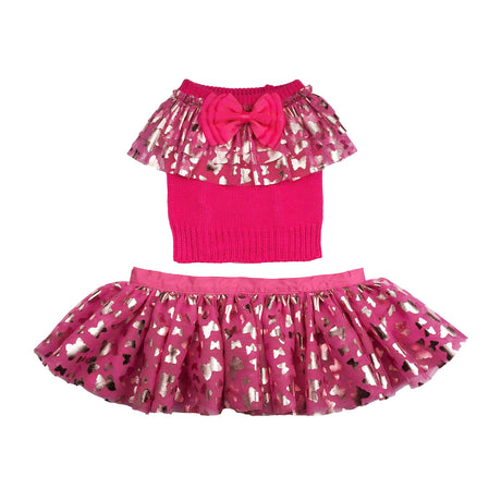 Doggy Parton Ruffle Sweater Skirt Set for Dogs - Small, Pink