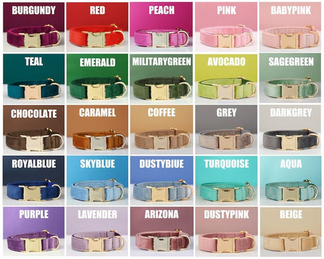 Multiple Colour Velvet Personalise Dog Collar Leash Set With Bow