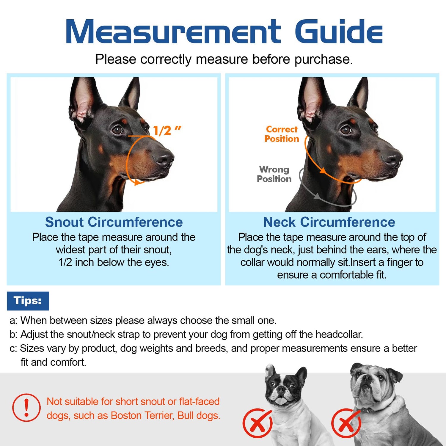 - 【 TWO SIZES AVAILABLE 】:S SIZE recommended for dogs with 30-50LB/ 14-23KG; M SIZE for dogs with 50-88LB/ 23-40KG. We highly recommend measuring your dogs' snout and neck circumference and check the size chart(fig.2) carefully before you purchase. (Tips: When between sizes always choose the smaller one; NOT fit for short snout dogs.)