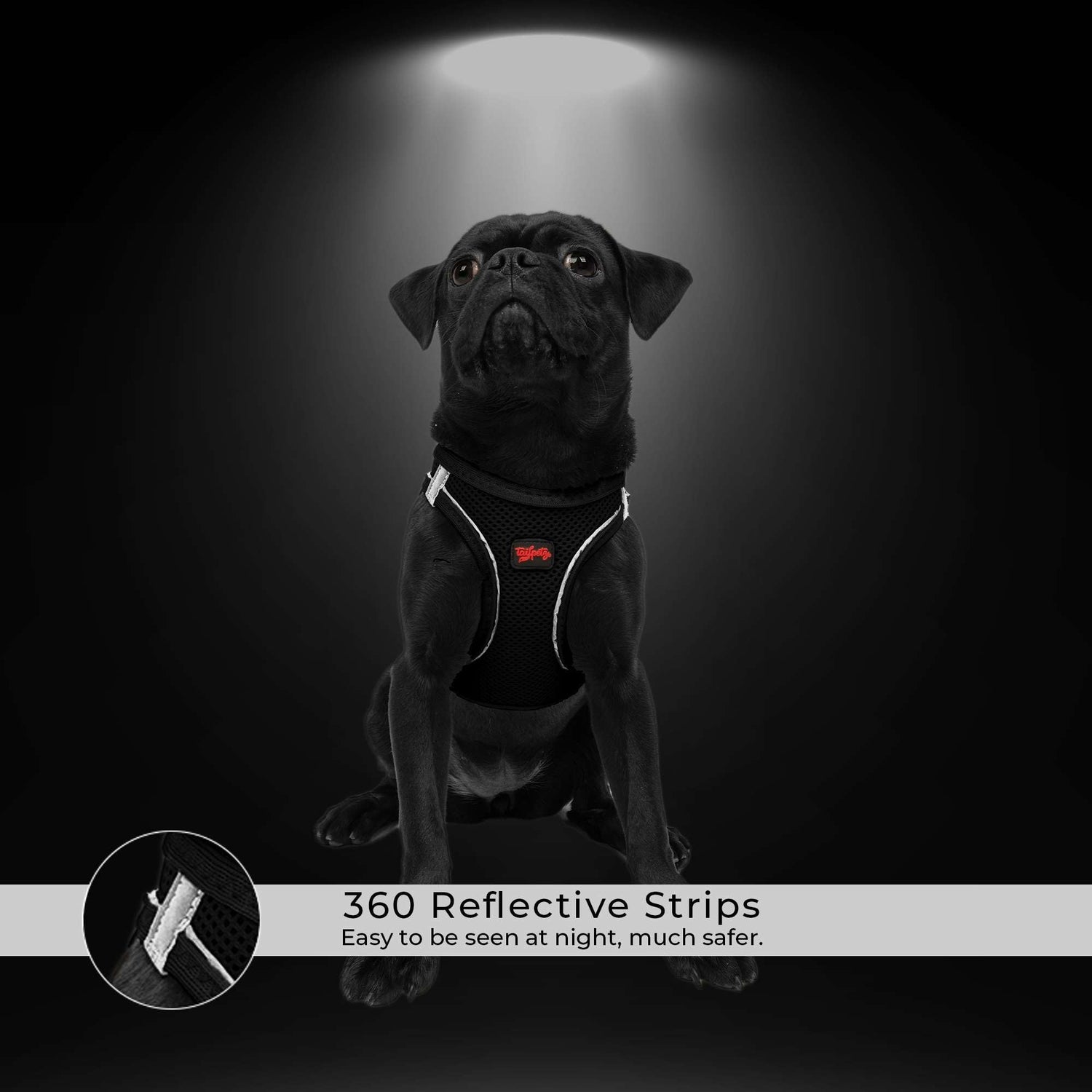 • [LIGHTWEIGHT & BREATHABLE MATERIAL] : The small breed dog harness for small dogs has air mesh outer material with comfortable, soft, breathable, lightweight, no pull and quick dry features. Also this no pull dog harness design fits the body and reduces pressure.