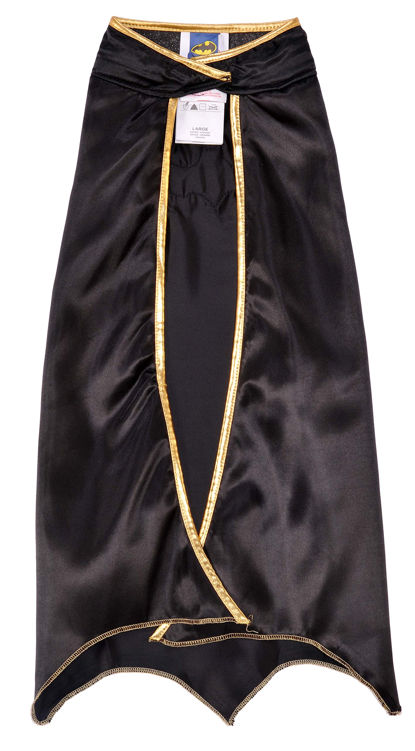 - IMPORTANT DETAILS: Batgirl black cape with hook and loop closure at neckline