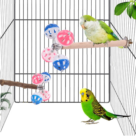 Bird Stand Perch Toy with Rotating Balls,Parakeet Stand Perch Toy for Metal Cage, Fun Toy for Parrots Cockatiels Budgies Budgerigars Parrotlets Lovebirds Ringne.
