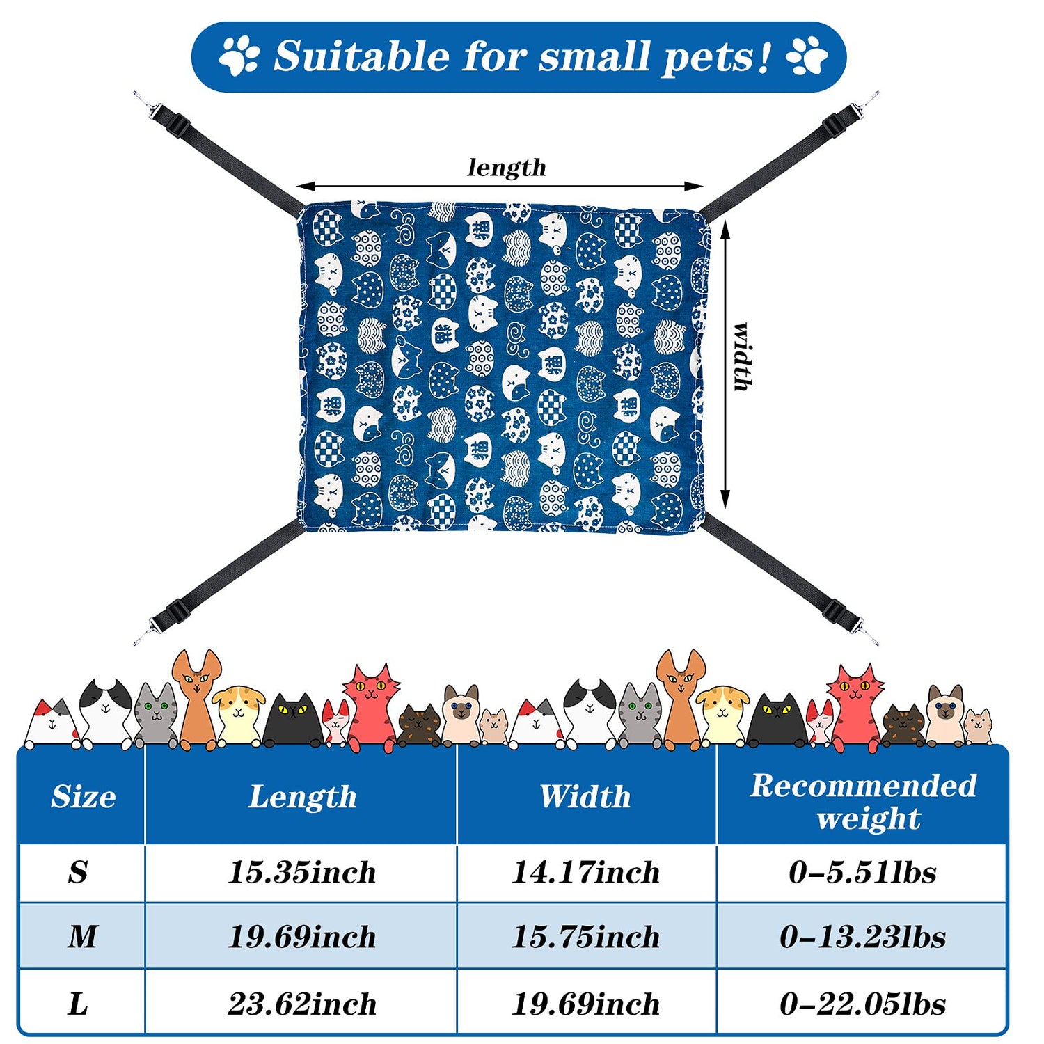 2 Pieces Reversible Cat Hanging Hammock Soft Breathable Pet Cage Hammock with Adjustable Straps and Metal Hooks Double-Sided Hanging Bed for Cats Small Dogs Rabbits, Medium
