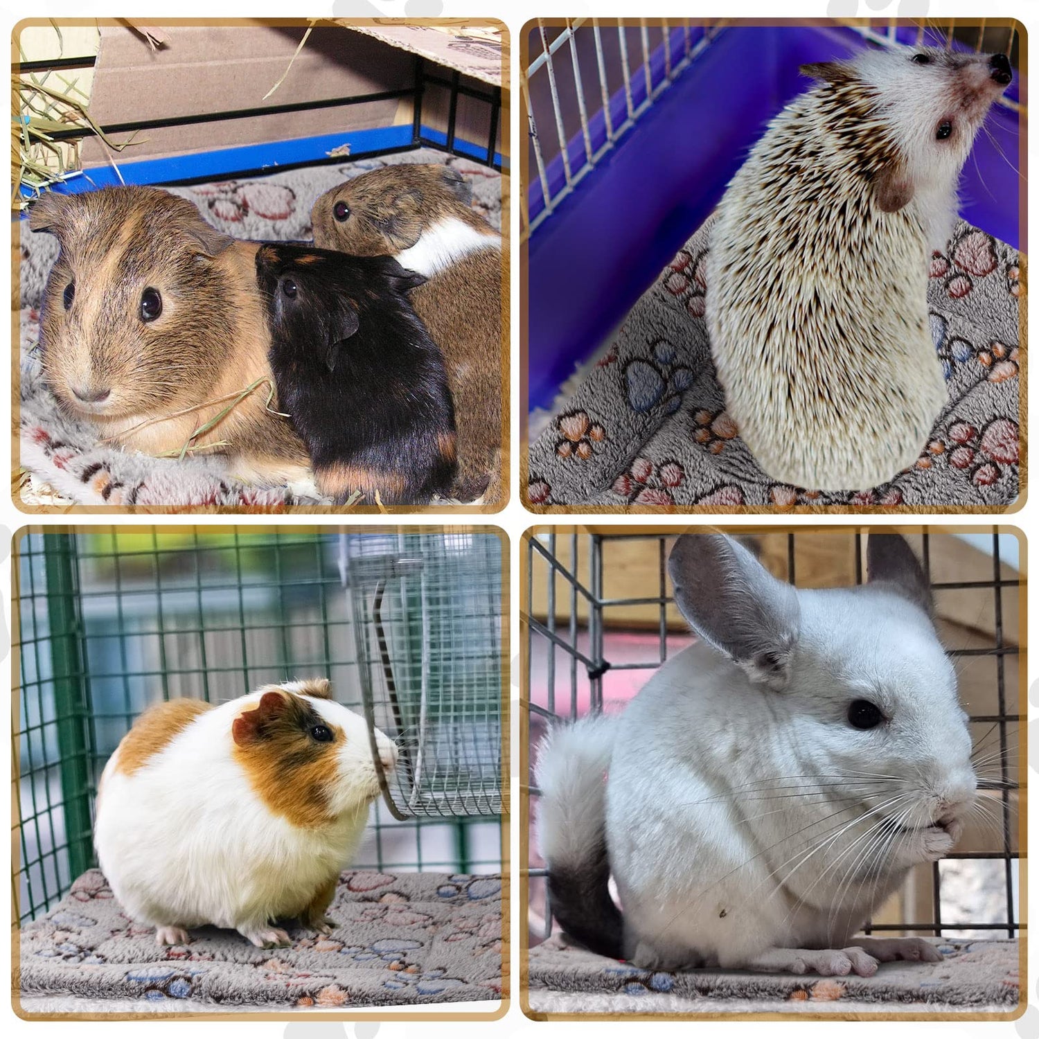 4 Pack Ultra Soft Dog Cat Bed Mat with Cute Prints Reversible Fleece Dog Crate Kennel Pad Cozy Washable Thickened Hamster Guinea Pig Pet Bed Mat for Small Animals(13 x 10 Inches,Gray)