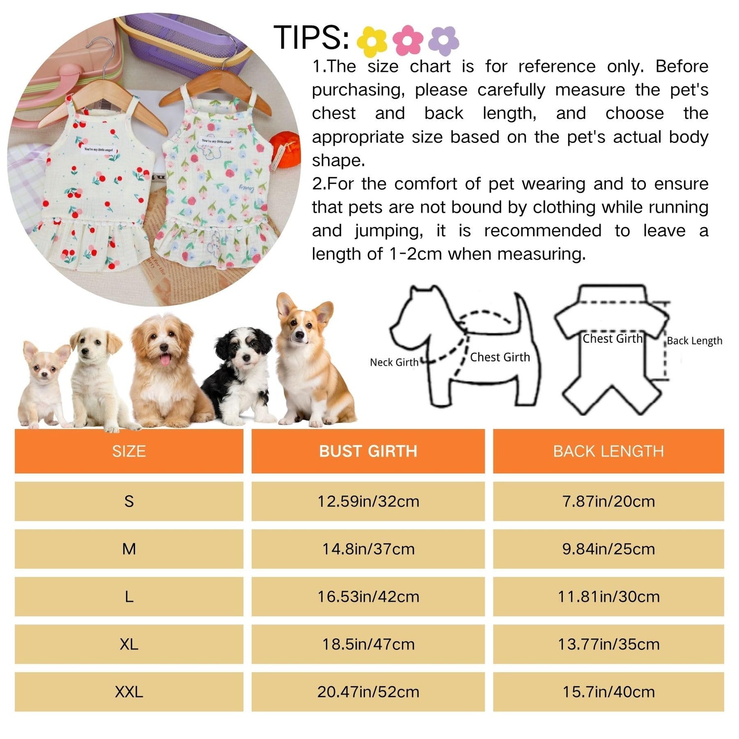 - Size Chart: Pet skirt is suitable for most small dogs, please measure your dog's bust, neck, back size before buying, please use a tape measure and leave 2 finger width between the dog's neck circumference, to make sure your dog doesn't feel tight.