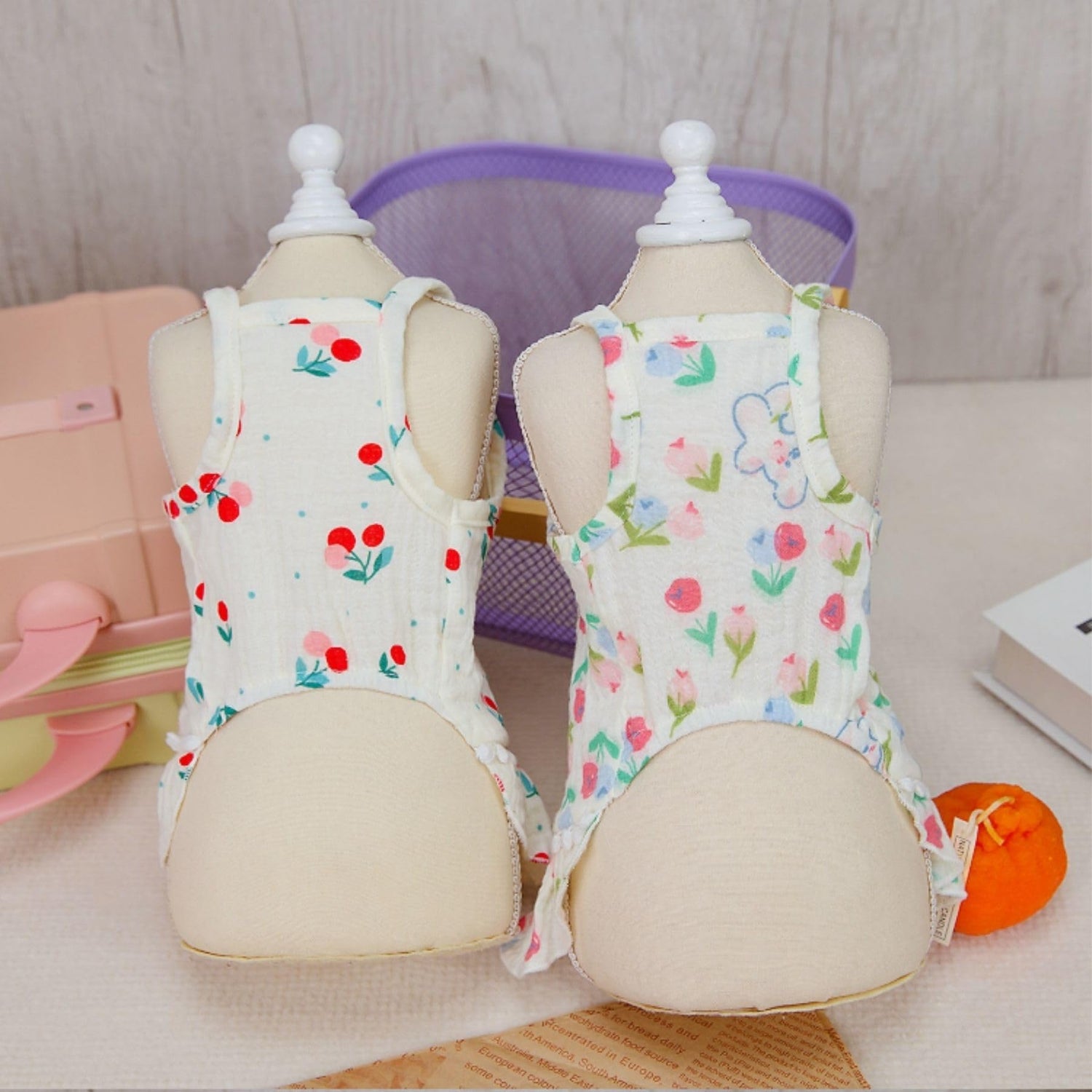 Floral Print Dog Dress Skirt for Small Medium Pet Skirt Soft Breathable Cotton Outfits