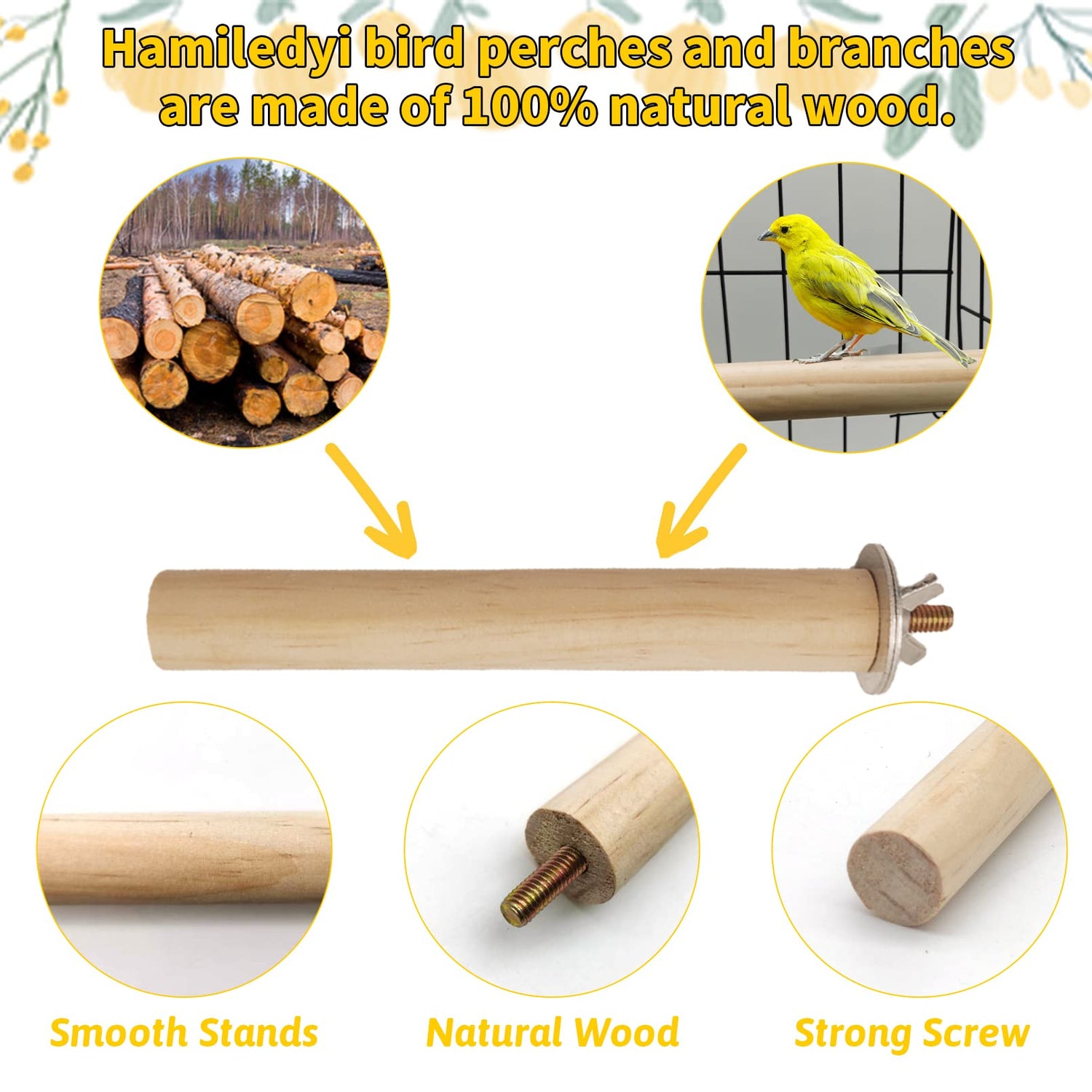 Hamiledyi Bird Perch for Cage Parakeet Stand Bird Cage Accessories Natural Wood Perch 5 Piece Set for Birds Platform Stick Playground for Small and Medium Sized Birds Cockatiel Parrot Conure