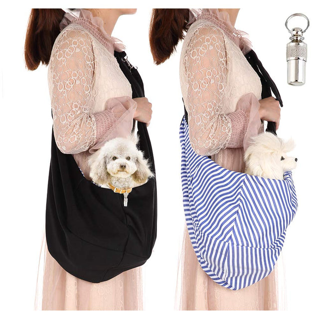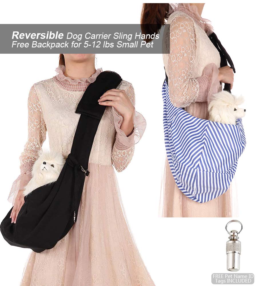 Lynkaye Small Dog & Cat Travel Bag - Hands Free Pet Carrier with Adjustable Strap & Stainless Steel ID Barrel (Black, Up to 12 lbs)