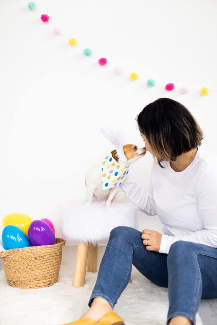 - Your dog will be the star of the Easter egg hunt and will be sure to outshine even the Easter bunny himself with this adorable dog bandana by Pearhead!