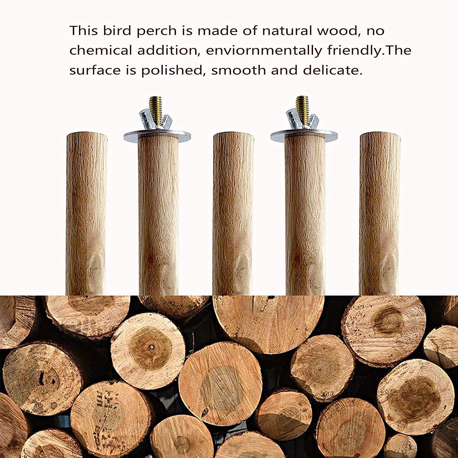 - Natural Wood: Our bird perch is made of natural wood, with no chemical addition. The surface is polished for a beautiful finish, making it a good choice for birds to chew and play with; This multipack includes 8 perches, providing plenty of options for your pet